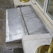 На первый взгляд, перед нами обычные ступени, которые могут быть покрыты любым материалом, чтобы лучше соответствовать представлению о существовавших ранее входных группах. Но благодаря соединенности с некоторым специальным механическим приводом, которым управляет Ditec Cubic 6, ступени легко превращаются в реальный пандус для доступа инвалида-колясочника.