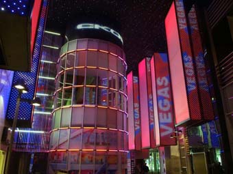 Общая площадь торгово-развлекательного комплекса (ТРК) Vegas составляет 400 тысяч квадратных метров (торговая - 130 тысяч "квадратов"). ТРК разбит на тематические зоны, в которых установлены 7000 световых элементов, включая "искусственное небо", а также специальная аудиосистема.
